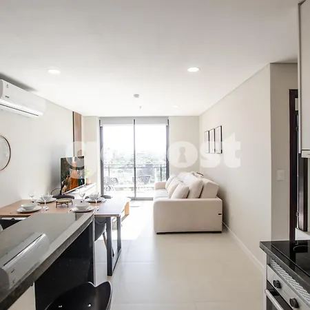 New And Fresh 2 Bedroom Apt In Villa Morra provides guests with a patio, a living room, and a fully equipped kitchen, as well as such modern comforts as air conditioning. The apartment features a bathroom with a dryer and towels.